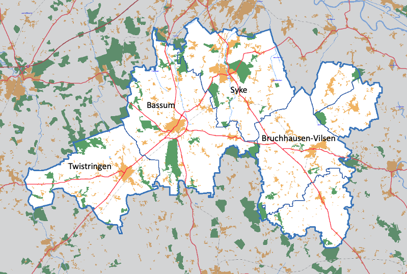 Die neue W.i.N.-Region umfasst die Städte Syke, Bassum und Twistringen sowie die Samtgemeinde Bruchhausen-Vilsen. Diese vier Kommunen arbeiten seit 2022 gemeinsam an der regionalen Entwicklung und bilden das Fördergebiet für die neue LEADER-Region.