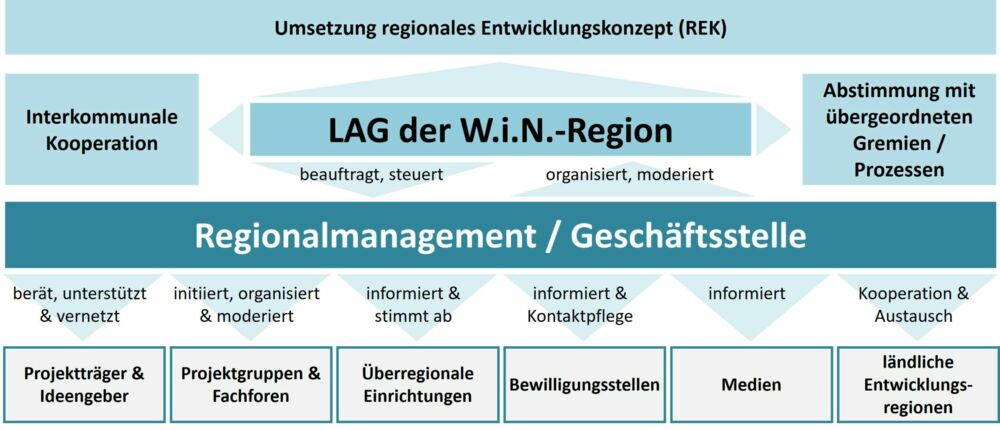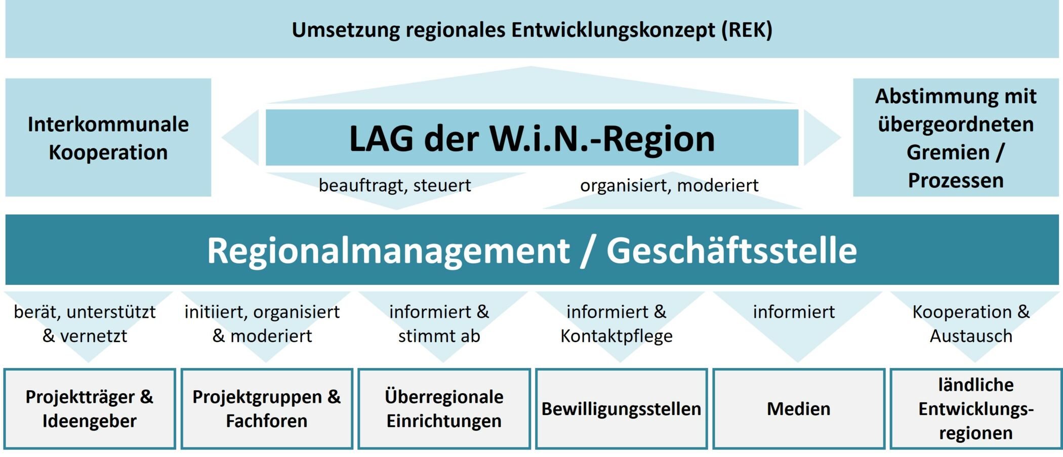 Die Lokale Aktionsgruppe (LAG) ist für die Umsetzung des REKs verantwortlich und entscheidet über die Förderwürdigkeit von Projekten.